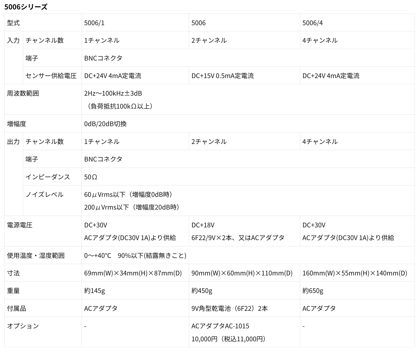 マイクロホン、加速度ピックアップ用電源 TYPE5006シリーズ (20dBアンプ付)