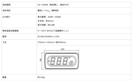 ・大型LED表示、ケース一体型(騒音計内蔵)