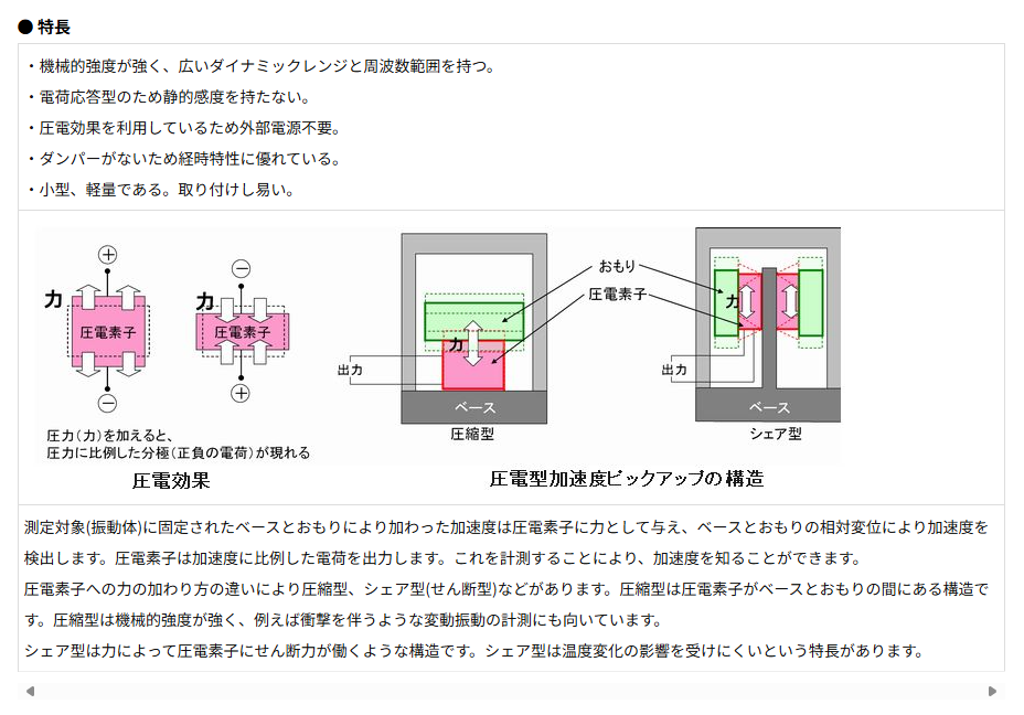 以下の特長がある為、振動計測の幅広い分野で広く使用されています。
