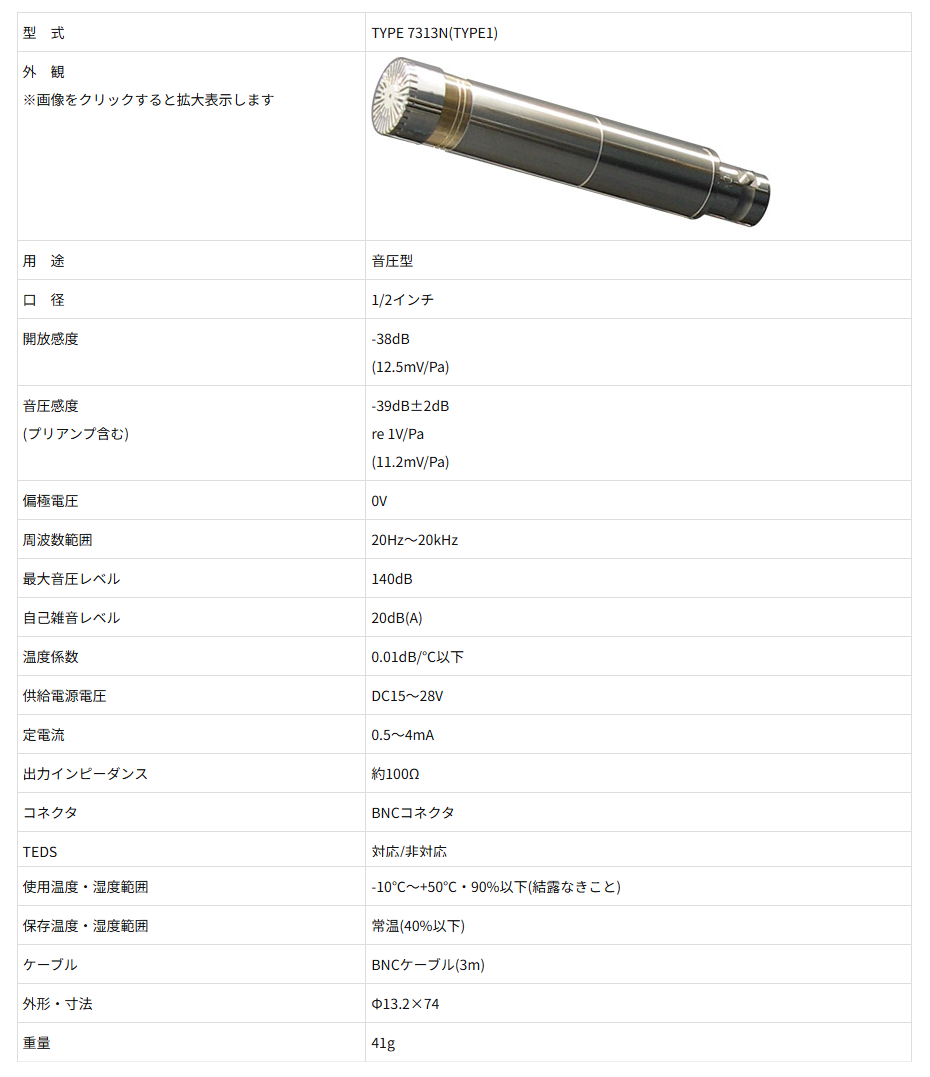 また、普通騒音計/精密騒音計などの測定システムに重要な規格である、IEC 61672で要求されるマイクロホンの規格にも適合しています。